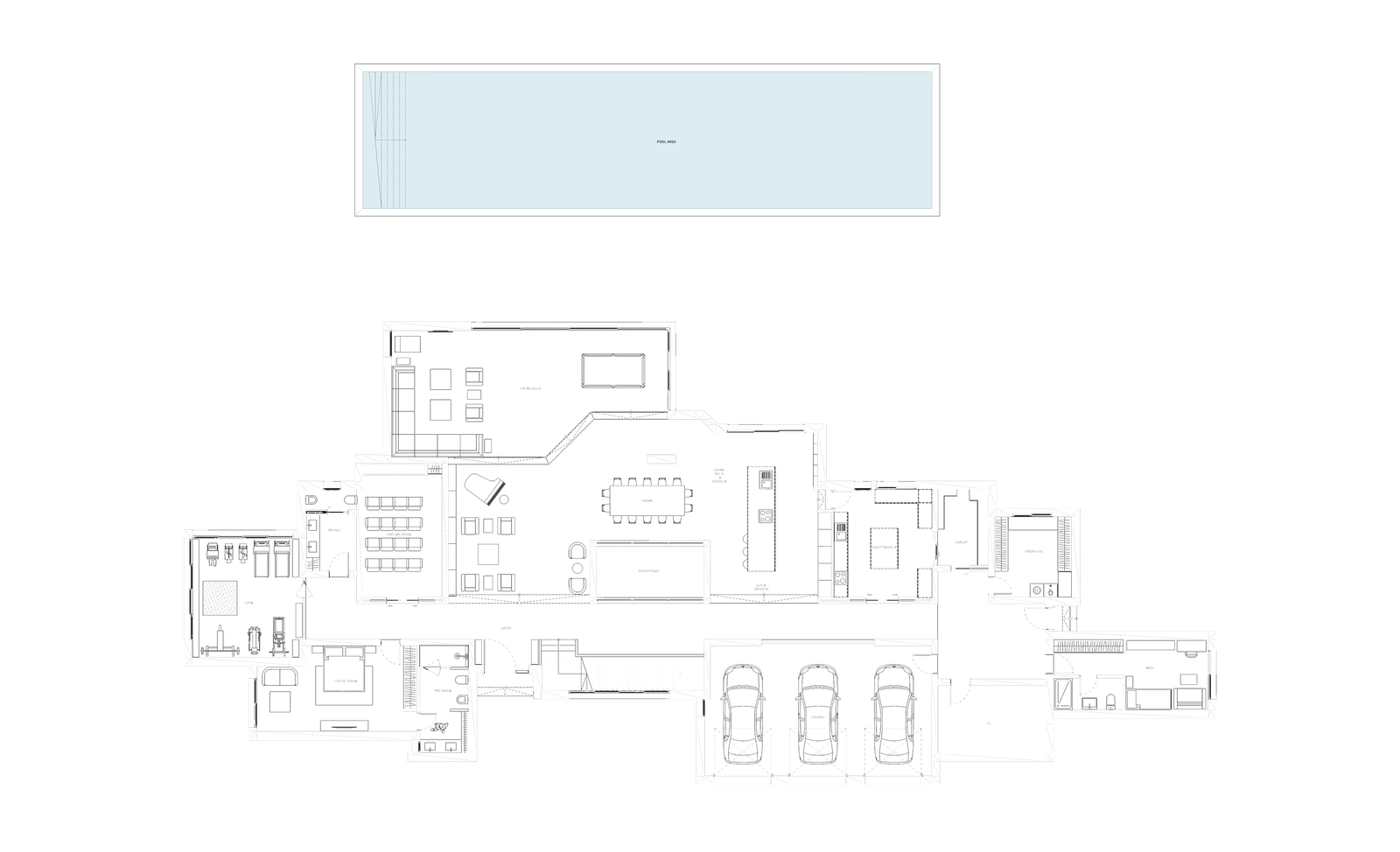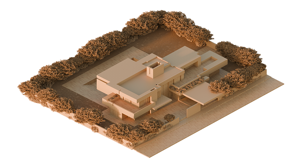 Villa IX is conceived as an experimental proposition that bridges architectural heritage and contemporary expression. The floor plan takes inspiration from Frank Lloyd Wright’s early works, where spatial sequences, fluid circulation, and the integration of living spaces are carefully orchestrated to encourage both intimacy and openness. This Wrightian influence is reinterpreted through a modern lens, producing a layout that prioritizes functional clarity, connection with the outdoors, and the flow between communal and private zones.